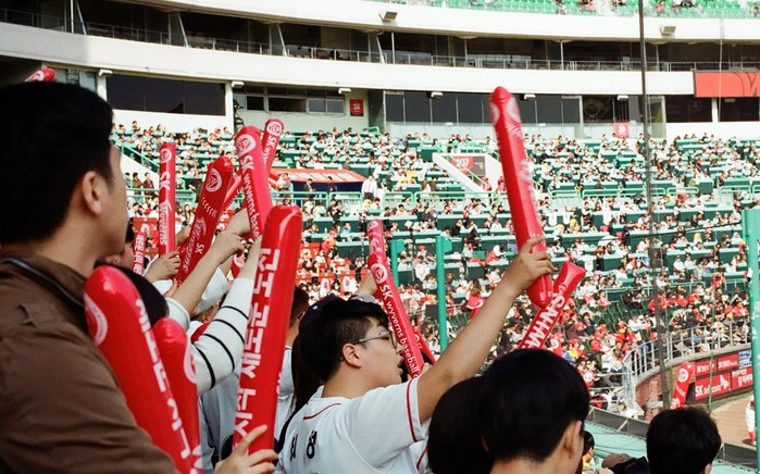 | ▲관중들이 손에 든 응원도구를 흔들며 응원에 열중하고 있다. |