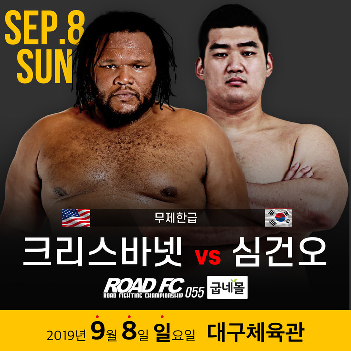 [세계타임즈 김인수기자] ROAD FC (로드FC)는 9월 8일 대구체육관에서 굽네몰 ROAD FC 055를 개최한다. 이날 크리스 바넷과 심건오가 약 1년 9개월 만에 케이지 위에서 만난다.
