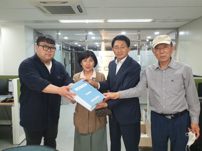 | ▲ 5월 25일 이석주 시의원과 이향숙 구의원은 아파트단지 주민대표들과 함께 2020년 공시가격 단체서명 이의신청서를 한국감정원에 전달했다. |