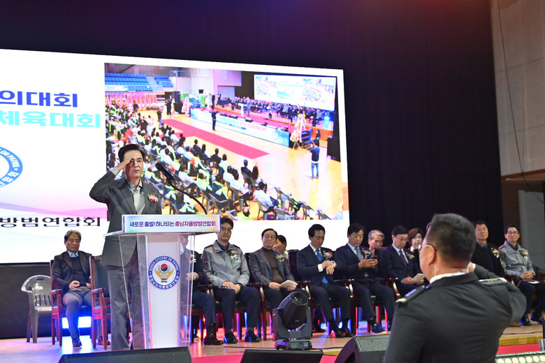 [충남 세계타임즈=이현진 기자] 김태흠 지사는 15일 청양군민체육관에서 열린 ‘제17회 범죄예방 결의대회 및 한마음 체육대회’에 참석해 충청남도 자율방범연합회의 노고를 격려하고 감사를 전했다.