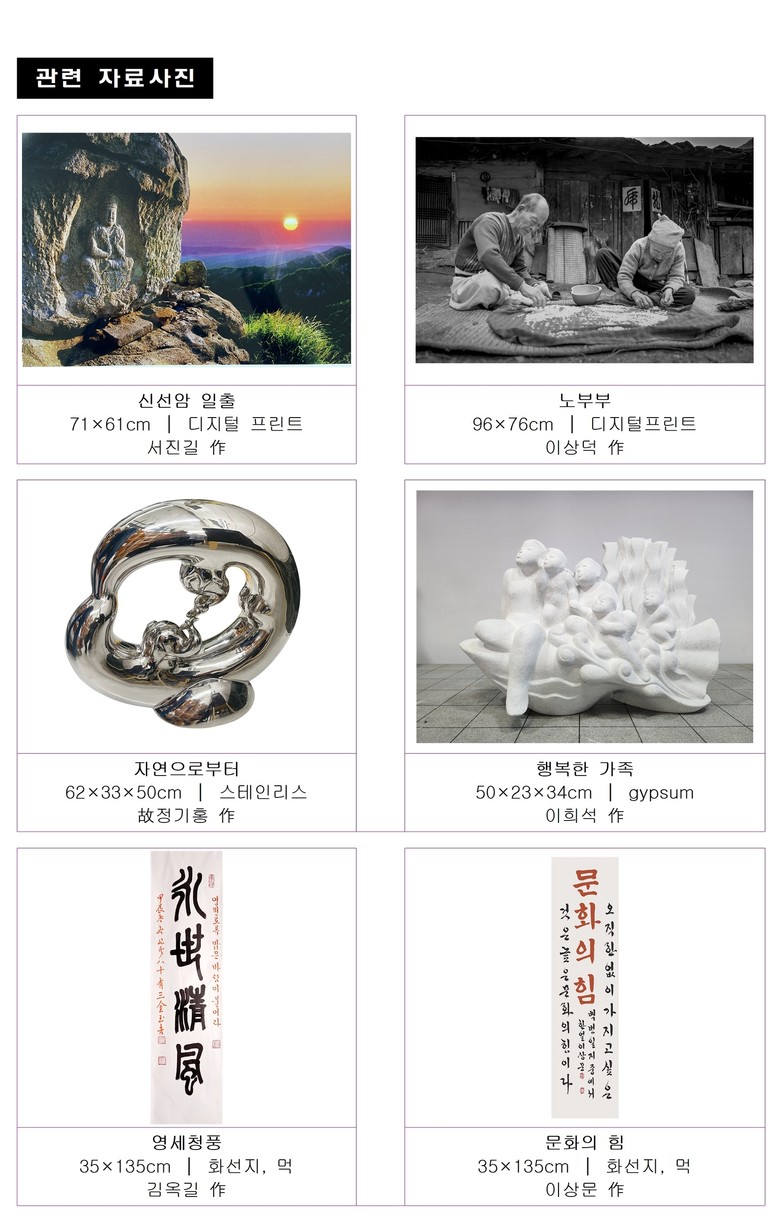 전시에는 울산의 대표 전시예술단체인 사진협회 5명, 미술협회 5명, 서예협회 4명, 민미협회 3명 등 총 17명이 참여하며, 170점의 다양한 작품을 선보인다.