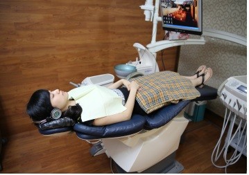 치과 진료를 받을 때 헤드폰으로 음악을 들으면 음악의 정서적인 역할과 함께 치과 장비의 무서운 소리를 덜 들을 수 있어 공포감을 줄일 수 있다.