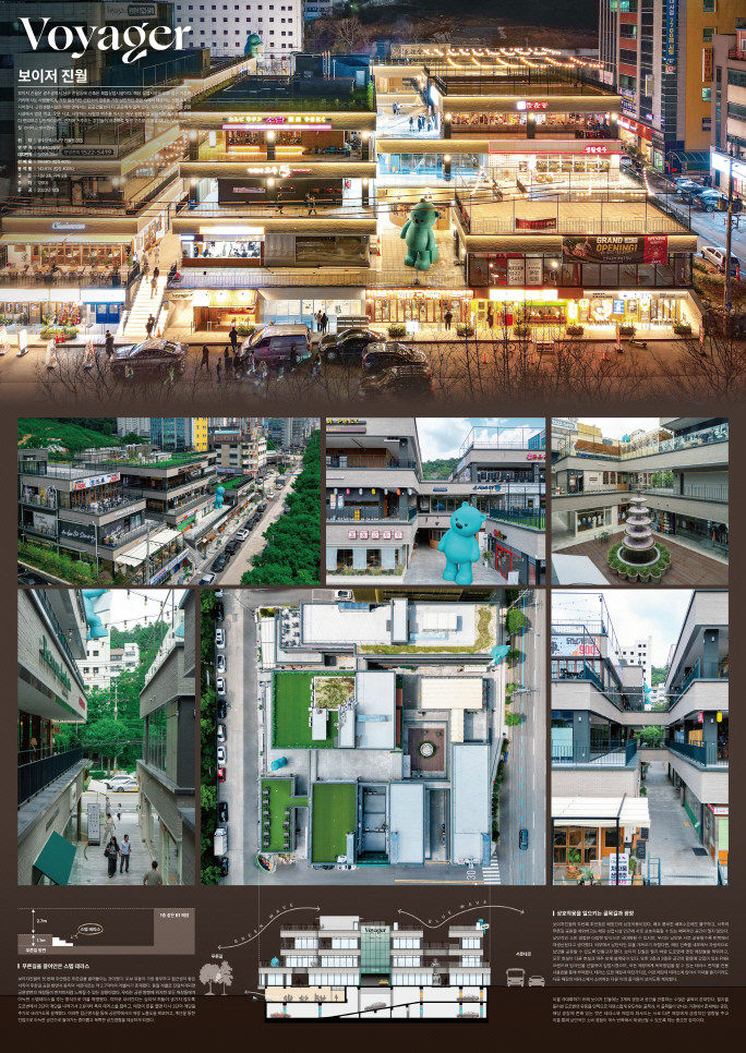 비주거부문 최우수작에 선정된 남구 진월동 ‘보이저 진월’은 푸른길과 인접한 대지의 특성을 활용하고 도보 유동을 통한 접근성을 고려한 열린 배치와 건물 내부공간에 있는 상업시설들을 서로 마주 보도록 배치, 상호 작용한 점이 인상적이라는 평을 받았다.
