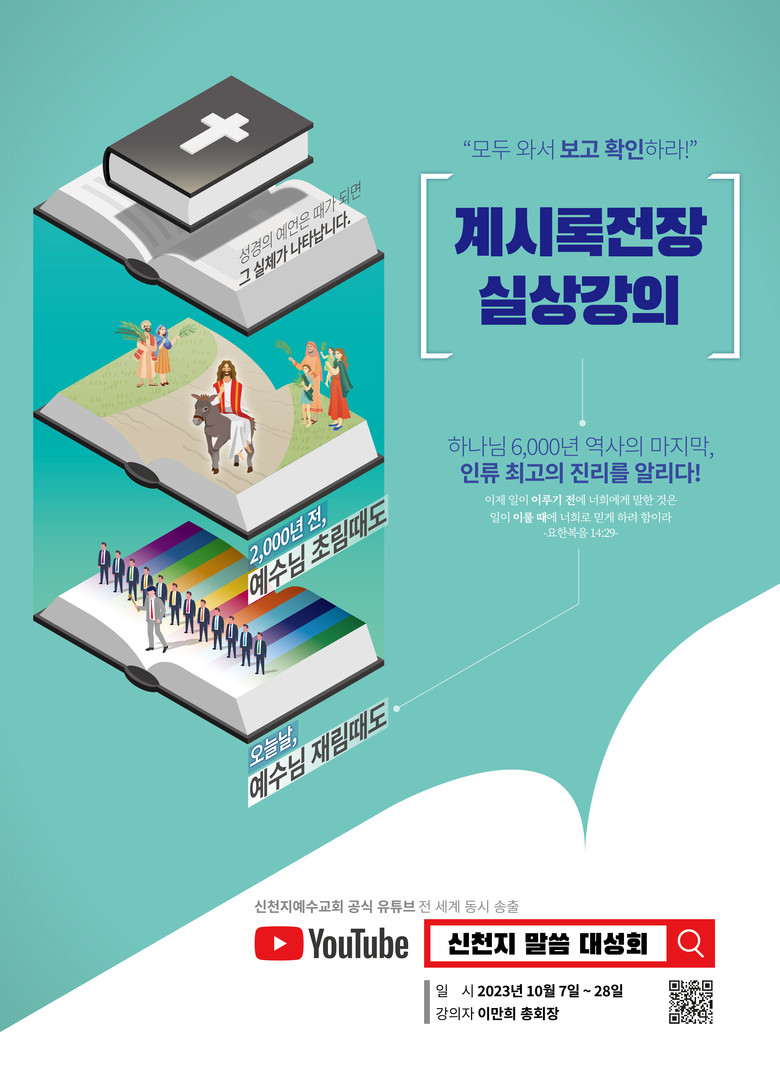 이에 금번 5회에 걸친 말씀대성회에서는 지난 강연보다 더 폭넓고 다양한 주제별 계시록 강연이 이뤄질 예정이다.