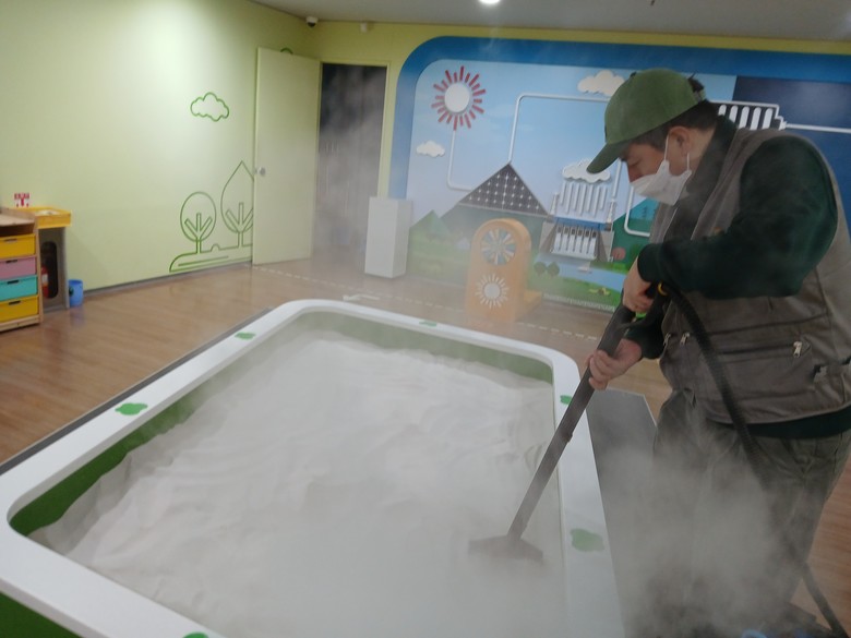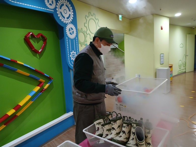유아의 건강을 고려해 화학 약품 사용을 최소화하고, 고온 스팀을 활용해 인체에 무해한 방식으로 소독을 진행했으며, 특히 유아들의 손이 많이 닿고 이용 빈도가 높은 실내 놀이·체험 공간 전반에 걸쳐 집중적으로 방역을 마쳤다.