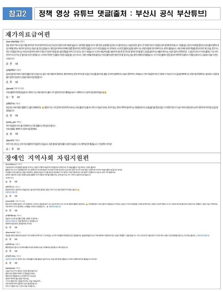 특히 시가 최근 공개한 공영장례, 재가의료급여, 장애인 지역사회자립지원 영상 등은 유튜브 댓글이 편당 1천여 개를 기록하고 있으며, 중앙부처, 지자체 등 관련 정책기관 설명회에서도 큰 호응을 얻었다.