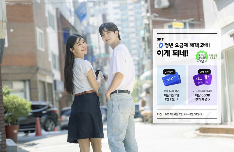 또한, ‘0청년 요금제’ 출시 1주년을 맞아 6월 1일부터 해당 요금제 가입 고객에게 영화 할인과 공유·테더링 전용 데이터 혜택을 2배로 제공하고 있다. 오는 8월까지 0청년 요금제에 가입된 모든 고객은 기존 혜택인 CGV 영화 관람권 50% 할인권 1장 외 추가로 1장을 매월 더 받고, 공유·테더링 데이터도 기존 제공량의 두 배를 매월 이용할 수 있다.