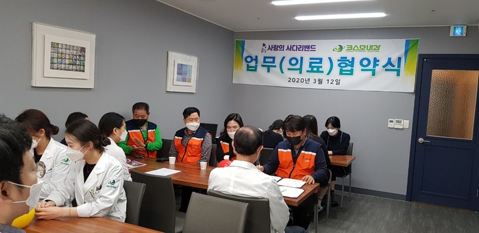 코스모내과병원 양종대 병원장은 “오늘 사랑의 사다리 밴드 봉사단체와 업무협약을 통해서 대전시 소외계층을 위해서 봉사를 함께 할 수 있어서 행복과 보람을 느낀다.”면서 “앞으로 봉사현장에서 애쓰시는 자원봉사자분들의 건강증진을 위해서 양질의 의료서비스를 아낌없이 제공하겠다.”고 말했다.