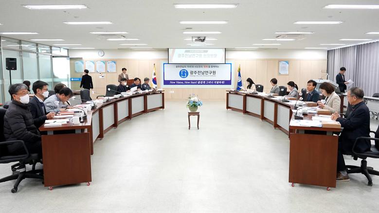 마지막으로, 나주혁신도시에 위치하고 있는 광주전남연구원을 방문하였다. 이번 연구원 방문은 최근 연구원의 분리 문제가 제기되고 있는 시점에서 연구원이 안고 있는 문제점과 앞으로의 발전방안을 모색하기 위한 차원에서 실시되었고, 업무현황 보고를 청취한 후 연구원 등 관계관들로부터 연구원 분리와 관련한 의견을 청취하였다.