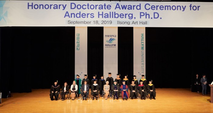 안데스 할베리 명예박사는 학문적 업적, 신약개발 관련 연구 성과, 한림대학교와 스웨덴 웁살라대학교 교류·협력에서의 중추적 역할 등을 인정받아 명예박사 학위를 받았다.