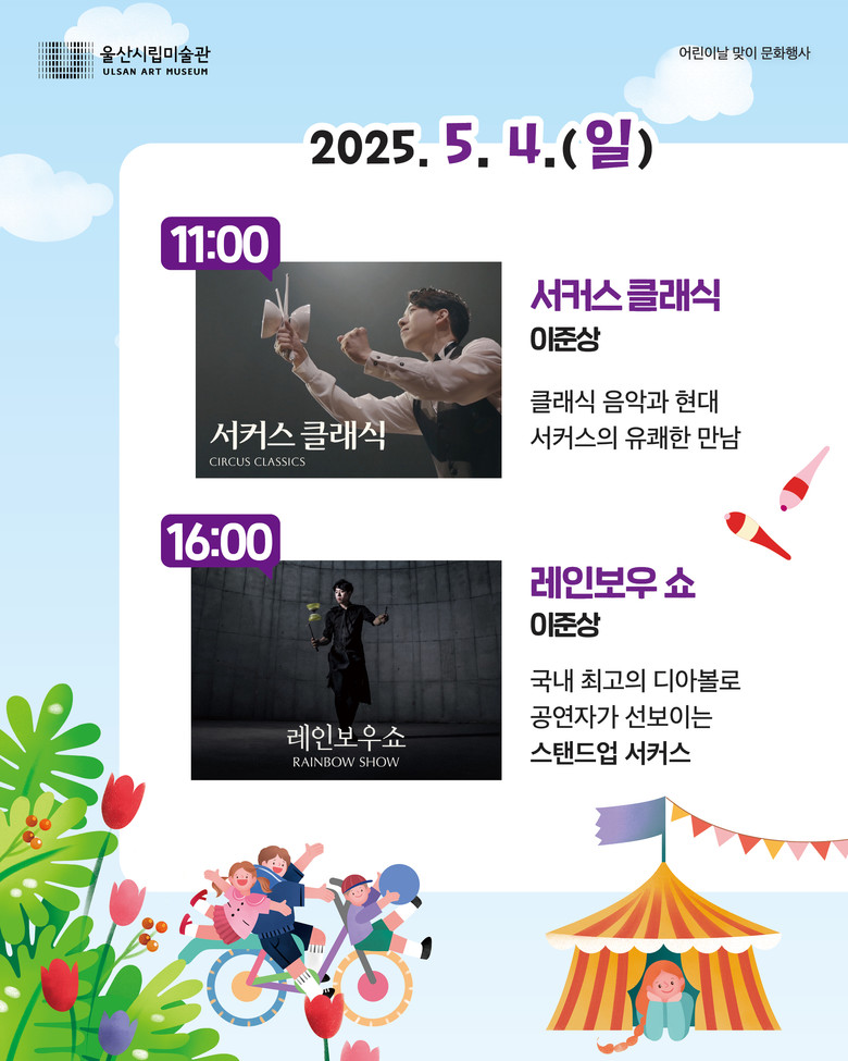 첫날인 5월 4일(일) 오전 11시에는 ‘서커스 클래식’, 오후 4시에는 ‘레인보우 쇼’ 등 총 2회에 걸쳐 진행된다.