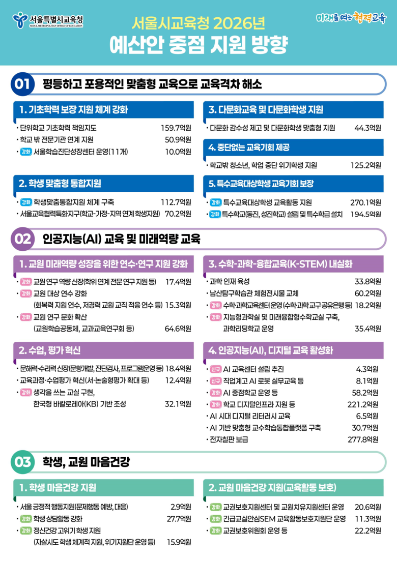 붙임 : 서울특별시교육청 2026년 예산안 중점 지원 방향
