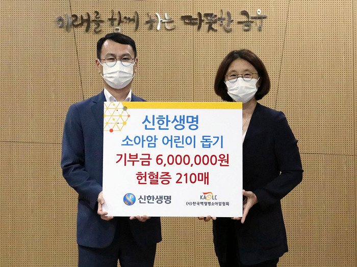[세계타임즈 이혜원 기자]신한생명은 한국백혈병 소아암협회에 헌혈증 210장과 600여만원을 기부했다고 20일 밝혔다.