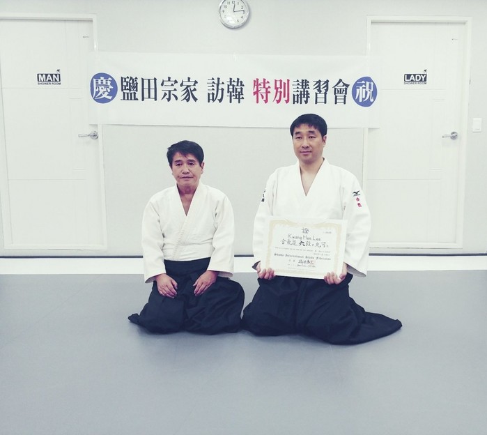 또한 이총재에게 그 동안에 있었던 (사)한국양신관합기도연맹 대소사(大小事)일들을 들어 보았다. 얼마 전 정통합기도의 시오다 야스히사(鹽田泰久) 종가가 한국을 방한(訪韓)했다. 방한 목적은 본인의 6단 승단 수여식과 함께 특별강습을 위해 부산에 방문했고 2박3일의 일정을 모두 마치고 일본으로 귀국을 했다.