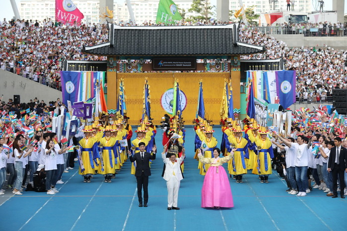 이어 에밀 콘스탄티네스쿠 전 루마니아 대통령과 빅토르 유시첸코 전 우크라이나 대통령 등 7명의 세계 정치 지도자들이 현장에서의 축사를 통해 HWPL의 평화행보에 전 세계가 동참해줄 것을 호소했다. 이어 축전 영상을 통해 전 세계 행정수반들이 평화 기원과 기념식을 축하하는 메시지를 전달해 왔다.