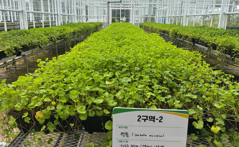 이에 전남도산림연구원은 병풀 자생지를 직접 조사해 우량 개체 자원을 확보했으며, 그중 생장량과 기능성 물질 함량이 뛰어난 병풀을 선발해 신품종 출원과 재배 표준화를 위한 연구를 진행하고 있다.