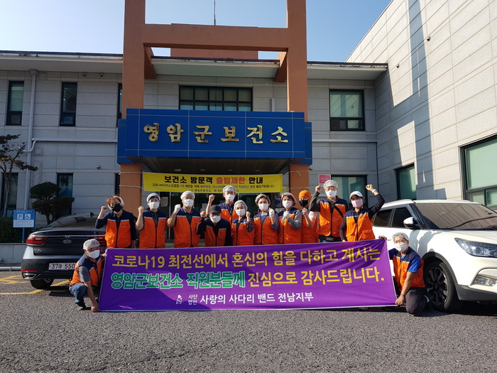 전남 영암군보건소 이국선 소장은 “오늘 사랑의 사다리 밴드 봉사단체에서 맛있는 통닭을 지원해주어서 큰힘과 위안이 된다.”면서 “코로나 19 종식을 위해서 전남 영암군보건소는 최선을 다하겠다.”고 말했다