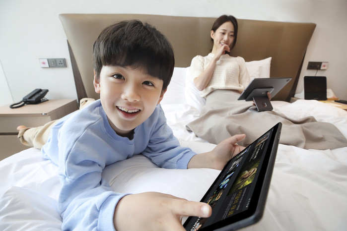 올레 tv 탭은 10.4인치의 큰 화면과 돌비 Quad 스피커의 입체적인 음향 기술을 지원해 콘텐츠 감상에 생생함을 더해주는 장점이 있다. 아울러 7,040mAh의 대용량 배터리로 한번 충전 시 최대 5시간 30분 이용이 가능해 캠핑 등의 야외 활동 시에는 가족이 함께 보는 캠핑용 TV로 손색 없다.