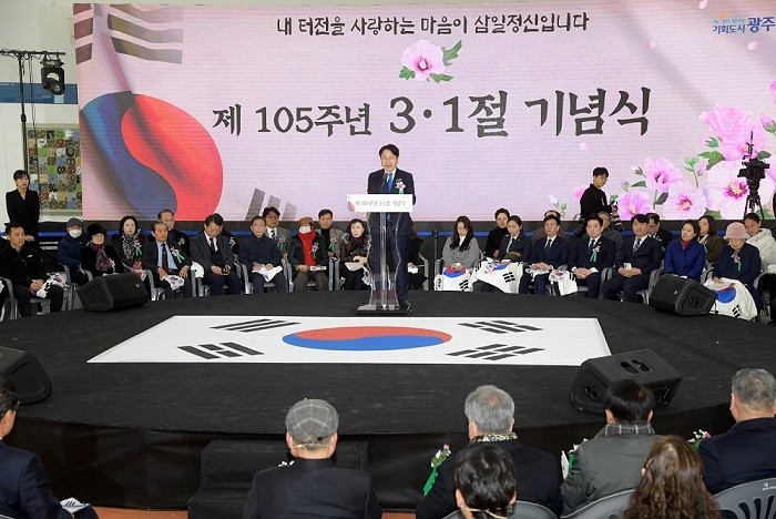강 시장은 “내 터전을 사랑했던 3‧1운동의 정신은 지금 우리에게도 필요하다”며 “지방의 위기이자 대한민국의 위기인 수도권 일극체제를 극복하고 우리의 터전을 지킬 힘은 터전을 사랑하는 마음에서 나온다. 우리 광주는 사랑할 만하고 자랑할 만한 터전이다”고 역설했다.