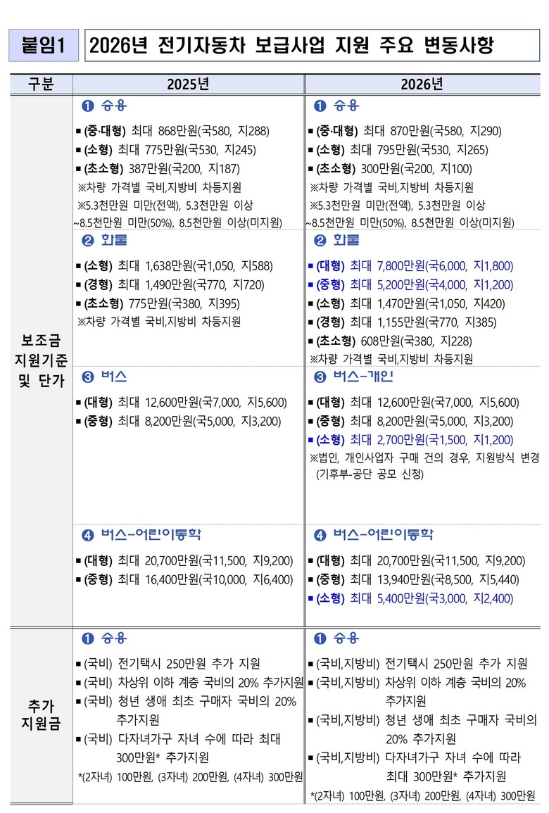 전기자동차 보조금 신청.접수는 2월 초부터 시군에서 추진되며 신청에 대한 자세한 사항은 무공해차 통합 누리집(https://ev.or.kr) 또는 시군 홈페이지 공고문을 통해 확인 할 수 있다. 아울러, 올해부터 법인·개인사업자의 전기승합차 보급사업은 환경공단에서 추진한다.