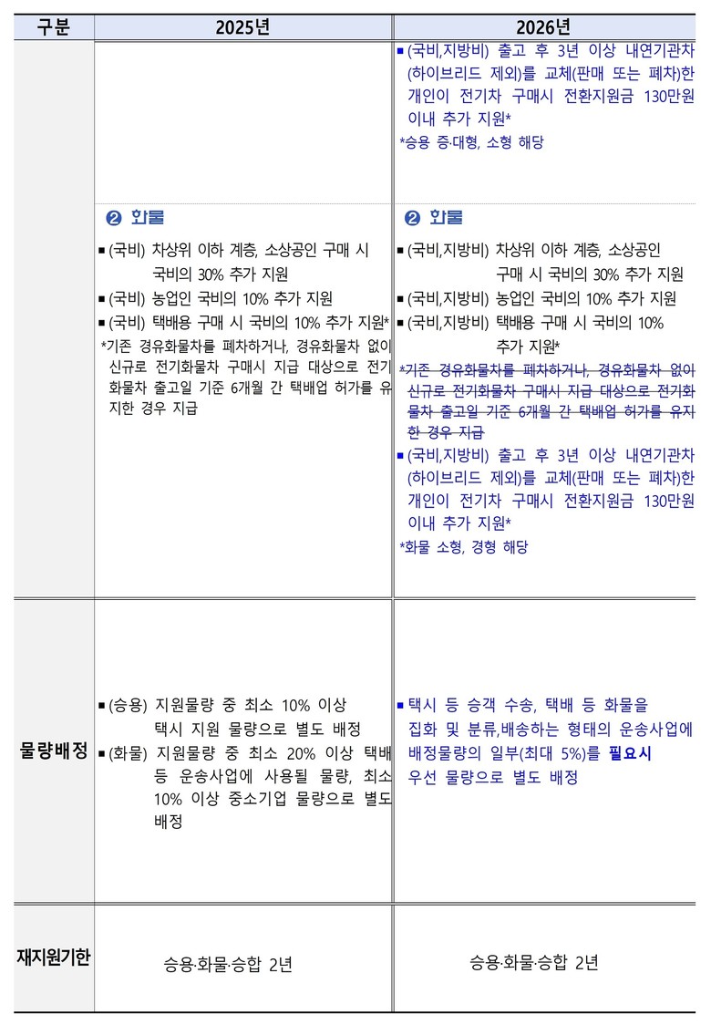 ○ 전기화물차 소형 최대 1,470만원, 중형 최대 5,200만원, 대형 최대 7,800만원,