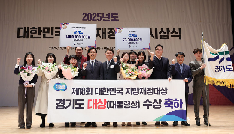 [경기도 세계타임즈=송민수 기자] 경기도가 행정안전부 주관 ‘제18회 대한민국 지방재정대상’에서 무기명예금증권 등 은닉성 채권을 끝까지 추적한 체납징수 성과로 대통령상과 시상금(재정 인센티브) 10억 원을 받았다. 작년에 이어 2년 연속 지방재정 최고상인 대통령상을 수상한 것은 전국 지자체 중 경기도가 유일하다.
