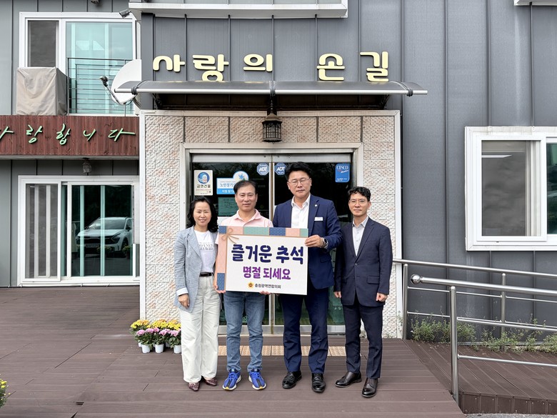 이날 충청광역연합의회 노금식 의장을 비롯한 안치영 윤리특별위원장은 충북 음성군 소재 노인요양시설인 사랑의손길요양원과 진천군 장애인보호시설인 진천군장애인주간보호시설을 찾아 추석맞이 명절 인사를 나누고 위문품을 전달했다.