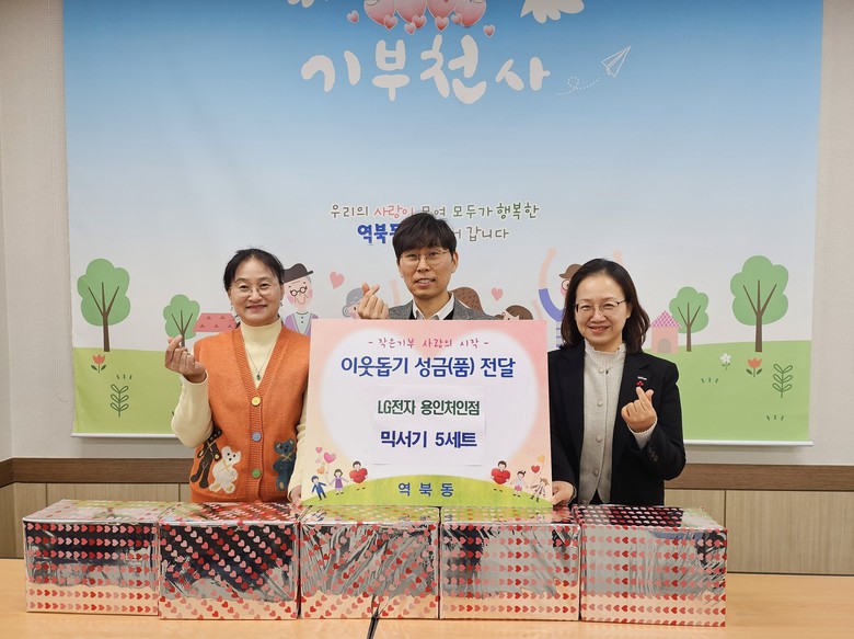 역북동은 12일 LG전자 용인처인점에서 지역 내 어려운 이웃을 위한 믹서기 5세트(50만 원 상당)를 기부했다고 밝혔다.
