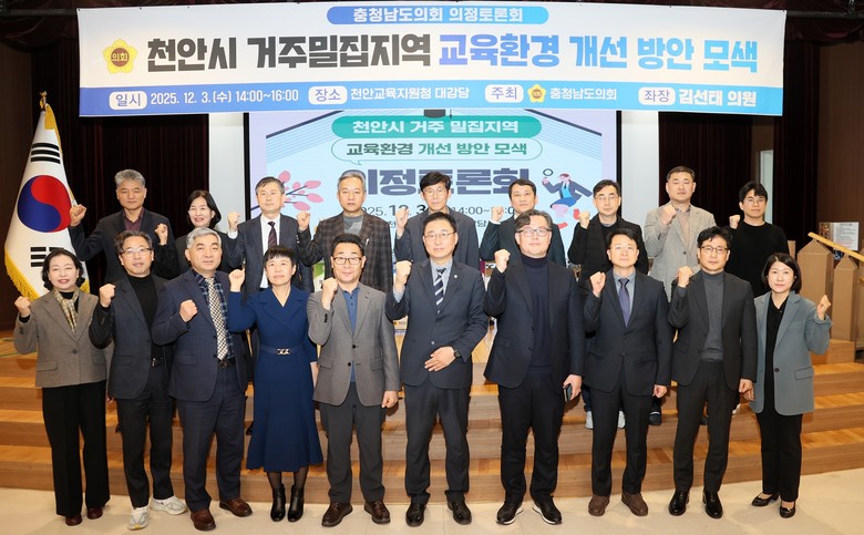 [충남 세계타임즈=이현진 기자] 충청남도의회는 3일 천안교육지원청 대강당에서 ‘천안시 거주밀집지역 교육환경 개선 방안 모색’을 주제로 의정토론회를 개최했다.