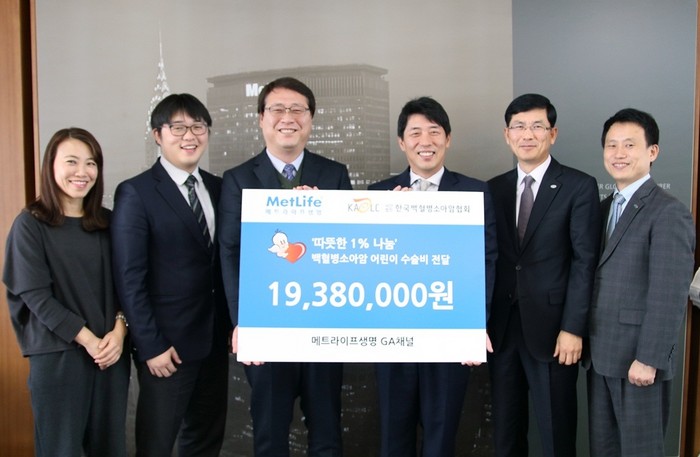 이에 이상윤 메트라이프생명 GA채널 전무는 “연말을 맞아 사회적 관심과 도움이 필요한 백혈병소아암 환아와 가족에게 따뜻한 희망을 전달할 수 있게 돼 기쁘다고 말했다.