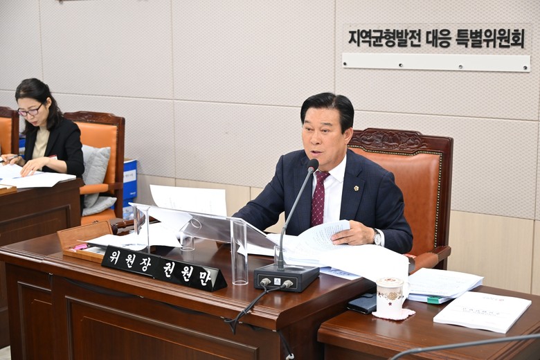 권원만(의령, 국민의힘) 위원장은 “현재 도에서 진행 중인 균형발전 관련 사업 중에서 문제가 없는지 특별위원회 차원의 현장 확인을 통해 면밀히 살펴보겠다.”고 밝혔다.