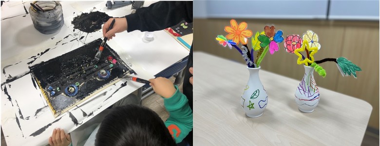 | ▲ 울산박물관 ‘놀이로 배우는 행복공작소’ 운영 모습과 체험 결과물 |