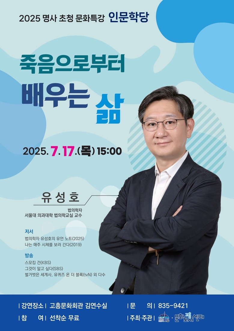 고흥군은 지방 소멸과 고령화라는 시대적 흐름 속에서 군민의 정신적 풍요와 문화적 자긍심을 높이기 위한 문화 정책의 일환으로, 매년 국내 저명한 인문학자 및 전문가를 초청하는 ‘명사 초청 문화특강’을 운영 중이다.