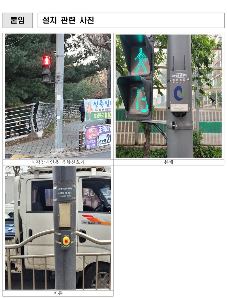 인천시는 시각장애인 관련 협회 및 생활 근거지인 학교 등과 긴밀히 협력하며, 개개인의 이동 동선을 고려한 설치 장소 수요조사를 실시했으며, 전화 및 국민신문고 등 다양한 시민 민원 요청을 적극적으로 수렴하여 음향신호기를 꾸준히 확충해 왔다. 이러한 사용자 중심의 접근 방식은 실질적인 보행 환경 개선으로 이어졌다.
