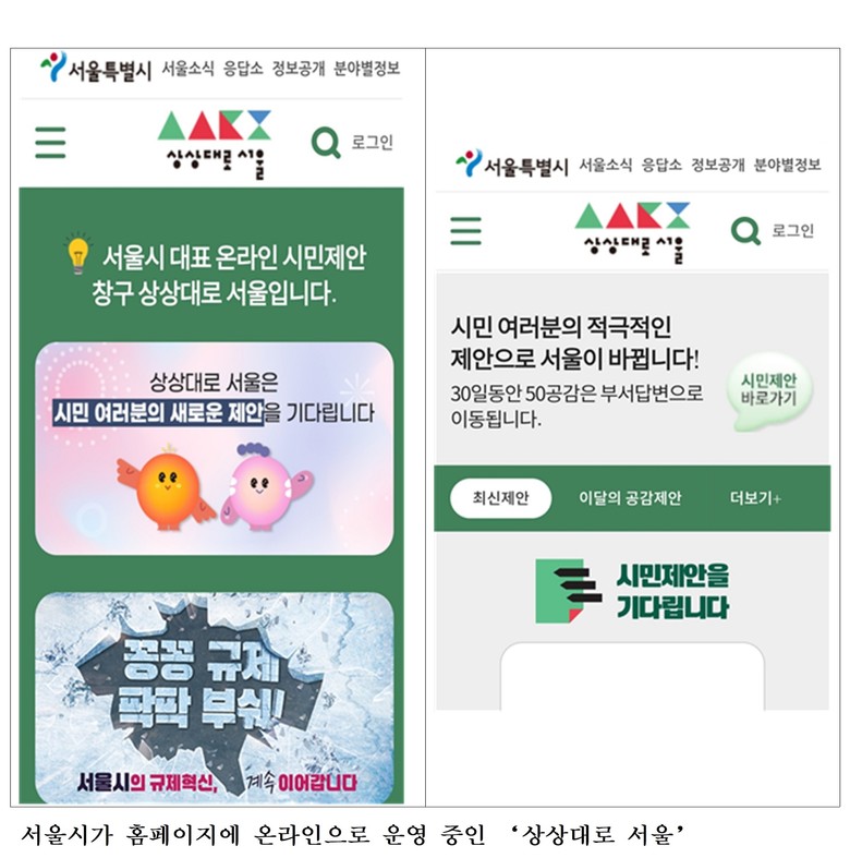 ‘상상대로 서울’은 시민이 일상 속 정책 아이디어를 제안하고, 30일 내 50명의 공감을 받으면 관련 주무 부서가 검토·답변하는 서울시의 대표적인 시민참여 플랫폼이다. ‘서울특별시 시민참여 기본 조례 시행규칙’제9조에 따르면 30일 내 50명의 공감을 받은 시민제안은 접수일로부터 1개월 내 처리결과를 통지해야 한다.