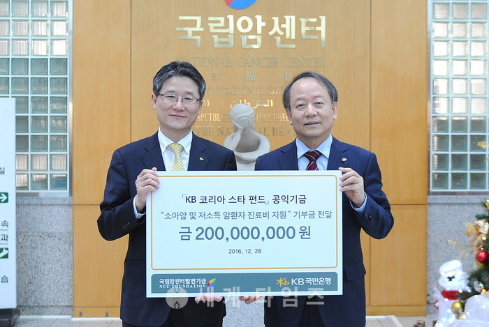 한편 KB국민은행은 국립암센터에 2014년부터 매년 기부금 지원을 통해 희귀암, 백혈병 등을 앓고 있는 159명의 암환우에게 희망을 전달했으며, 누적 기부금액은 8억원에 이른다. 최근에는 다문화 가정 등 저소득 환자 진료비 지원을 위한 기부금 1억원을 여의도 성모병원에 전달하기도 했다.