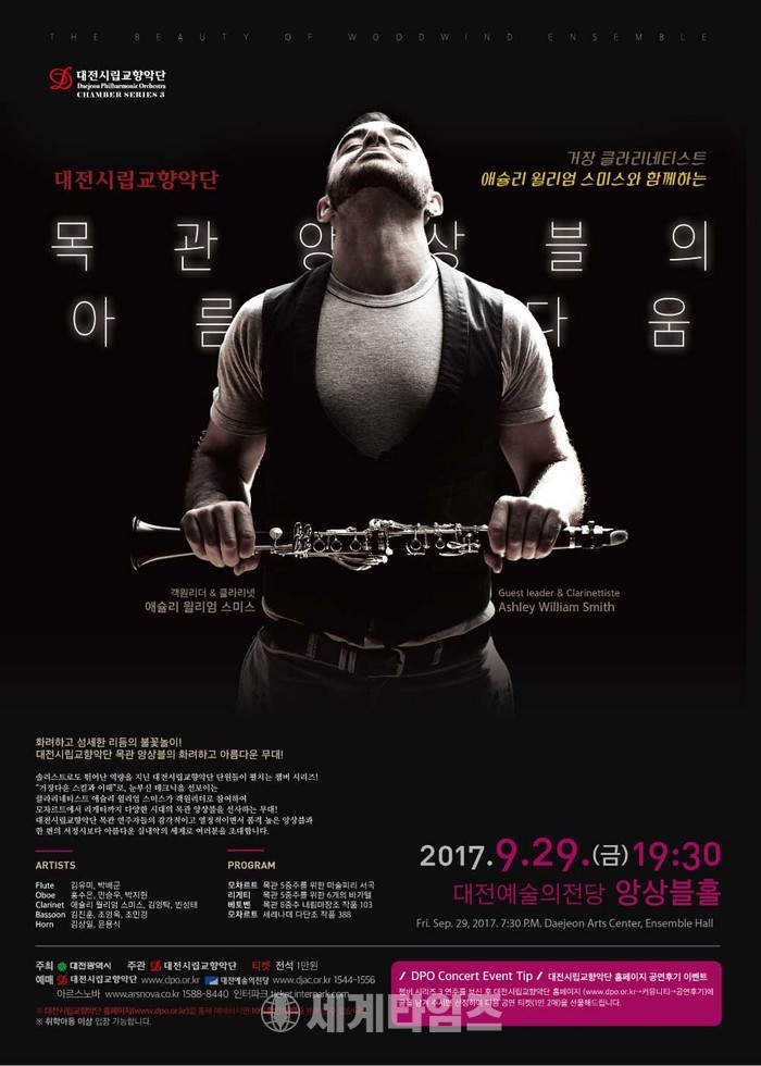 이번 공연은 솔리스트로도 뛰어난 역량을 지닌 대전시립교향악단의 단원들이 꾸미는 감각적이고 열정적인 무대로, 호주 출신의 거장 클라리네티스트 애슐리 윌리엄 스미스(Ashley William Smith)가 객원리더로 참여해 목관 앙상블의 진수를 선보인다.