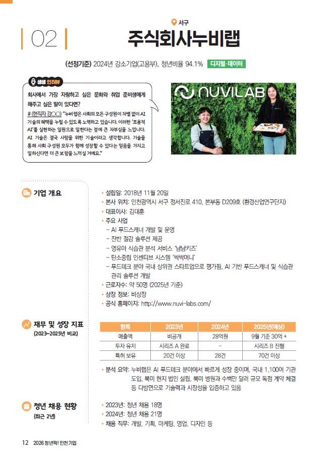 김세헌 시 청년정책담당관은 “이번 가이드북이 인천 청년과 지역 우수기업 간 정보 격차를 해소하는 가교 역할을 하길 기대한다”며, “청년들이 인천에서 양질의 일자리를 찾고 안정적으로 정착할 수 있도록 다양한 정책적 지원을 이어가겠다”라고 밝혔다.
