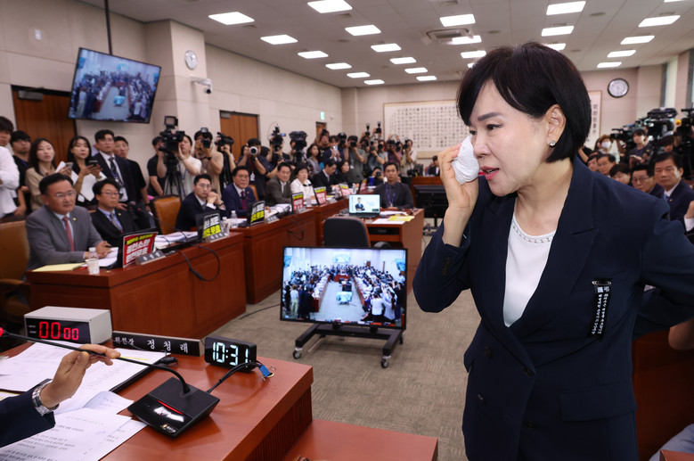 이날 국민의힘 의원 등은 청문회 개최에 항의하며 정청래 법제사법위원장실 앞에서 항의 농성을 했다.