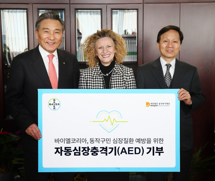 바이엘코리아 잉그리드 드렉셀 대표는 “이번 자동심장충격기 기부를 통해 응급상황 발생 시 동작구민들의 대처와 합병증 예방에 조금이나마 도움이 되기를 바란다”며, “앞으로도 바이엘코리아는 지역사회의 심혈관질환 예방과 건강 증진을 위해 기업시민으로서의 노력과 역할을 이어갈 것이다”고 말했다.