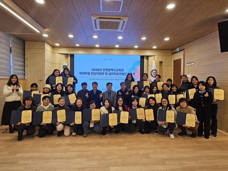 [인천 세계타임즈=심하린 기자] 인천광역시교육청(교육감 도성훈)은 학교폭력 피해학생의 심리적 회복과 안정적인 학교 복귀를 지원하기 위해 ‘2026학년도 학교폭력 피해학생 전담지원관 역량강화 연수 및 위촉식’을 개최했다고 5일 밝혔다.