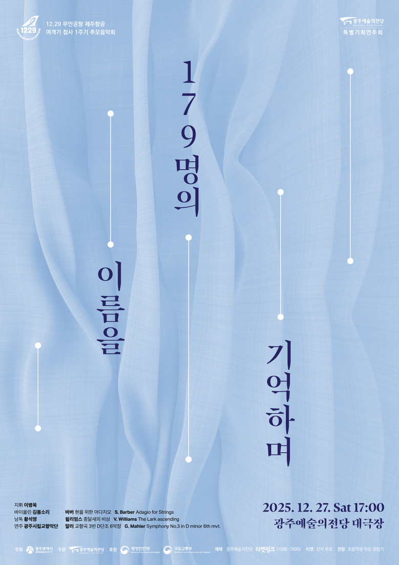 윤영문 광주예술의전당 전당장은 “참사 이후 시간이 흘렀지만 여전히 해결되지 않은 아픔과 질문들이 남아 있다”며 “이틀간의 공연이 그 마음들 가까이에 조심스럽게 놓이는 시간이 되기를 바란다”고 말했다.