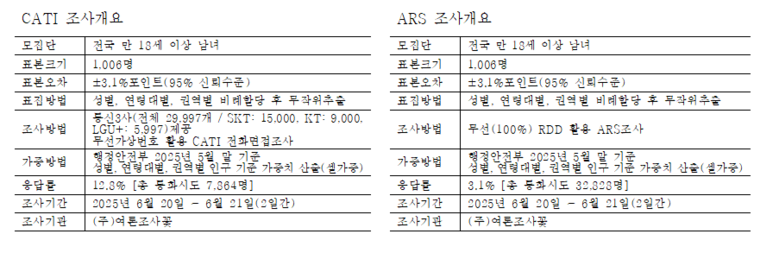 반면 국민의힘은 25.2%로 하락세를 이어가며 올해 최저치를 기록, 양당 간 격차는 28.5%p까지 벌어졌다. 새 정부 출범 3주차에 이뤄진 이번 조사는 정권 초반에 대한 높은 기대감과 정책추진 동력에 대한 긍정적 평가가 반영된 것으로 풀이된다.