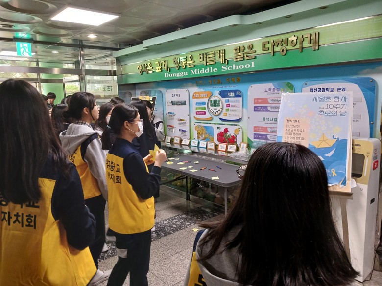 동구중학교 학생 자치회는 이번 행사에서 추모의 글을 적은 학생 중 일부를 뽑아 노란 리본 뱃지를 나눌 예정이다.