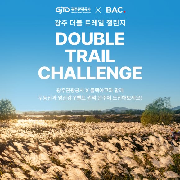 - 무등산 2곳·영산강 5곳 인증지…국내 최초 산-강 연계 [광주 세계타임즈=손권일 기자] 광주광역시(시장 강기정)는 광주관광공사, 블랙야크 알파인클럽과 함께 무등산과 영산강 Y벨트 일부 권역을 연계한 ‘광주 더블 트레일 챌린지’를 12월 31일까지 진행한다.
