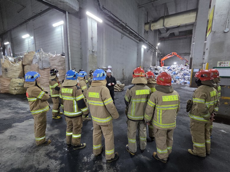 훈련이 실시된 지하 재활용선별장은 플라스틱, 비닐, 폐건전지 등 가연성 물질이 밀집된 공간으로, 화재 발생 시 연기 확산과 진입 제한 등으로 신속한 상황 판단과 대응이 요구되는 시설이다.