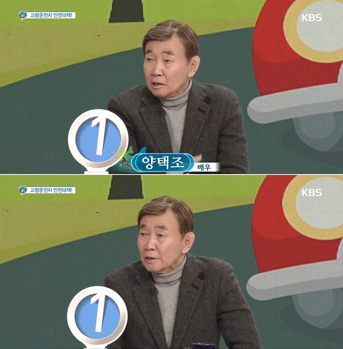 | ▲지난 1월 24일 KBS1 ‘아침마당’에 출연한 탤런트 양택조가 ‘고령운전자 안전대책’에 대한 이야기를 나누고 있다. 사진제공 = KBS1 ‘아침마당’ |