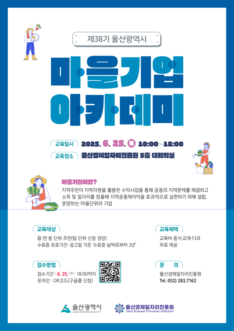 한편, 울산시는 오는 6월 26일 오전 10시 진흥원 5층 대회의실에서 ‘2025년 제38기 마을기업 아카데미’를 개최할 예정이다.