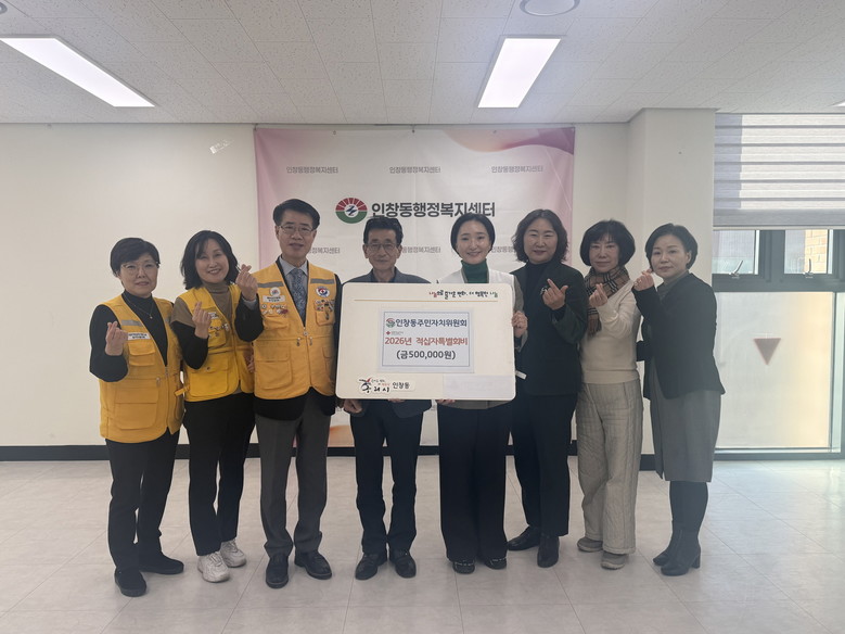 [구리시 세계타임즈=송민수 기자] 구리시(시장 백경현) 인창동 행정복지센터(동장 김경애)는 지난 29일, 인창동 주민자치위원회(위원장 양후선)가 어려운 이웃을 돕기 위한 2026년도 적십자 특별회비 50만 원을 적십자봉사회(회장 권영숙)에 전달했다고 밝혔다.