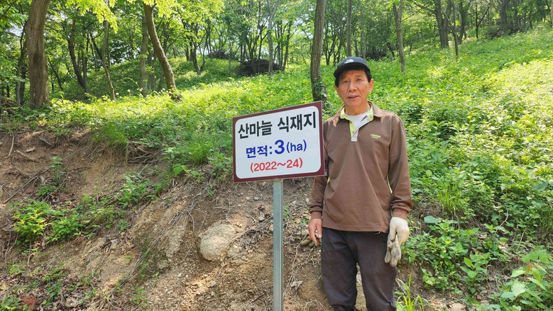 강창원 씨는 2012년부터 약 10ha 면적에 음나무, 녹차 등 다양한 작물을 꾸준히 재배하고 있으며, 2022년 산림복합경영단지 공모사업에 선정돼 무농약·무비료 방식의 친환경 산마늘 재배를 본격 시작했다.